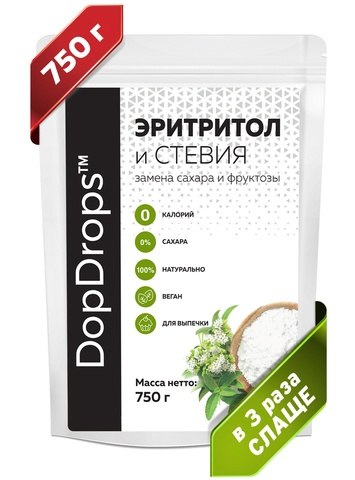 DopDrops Эритритол 3 к 1 и стевия 750 гр